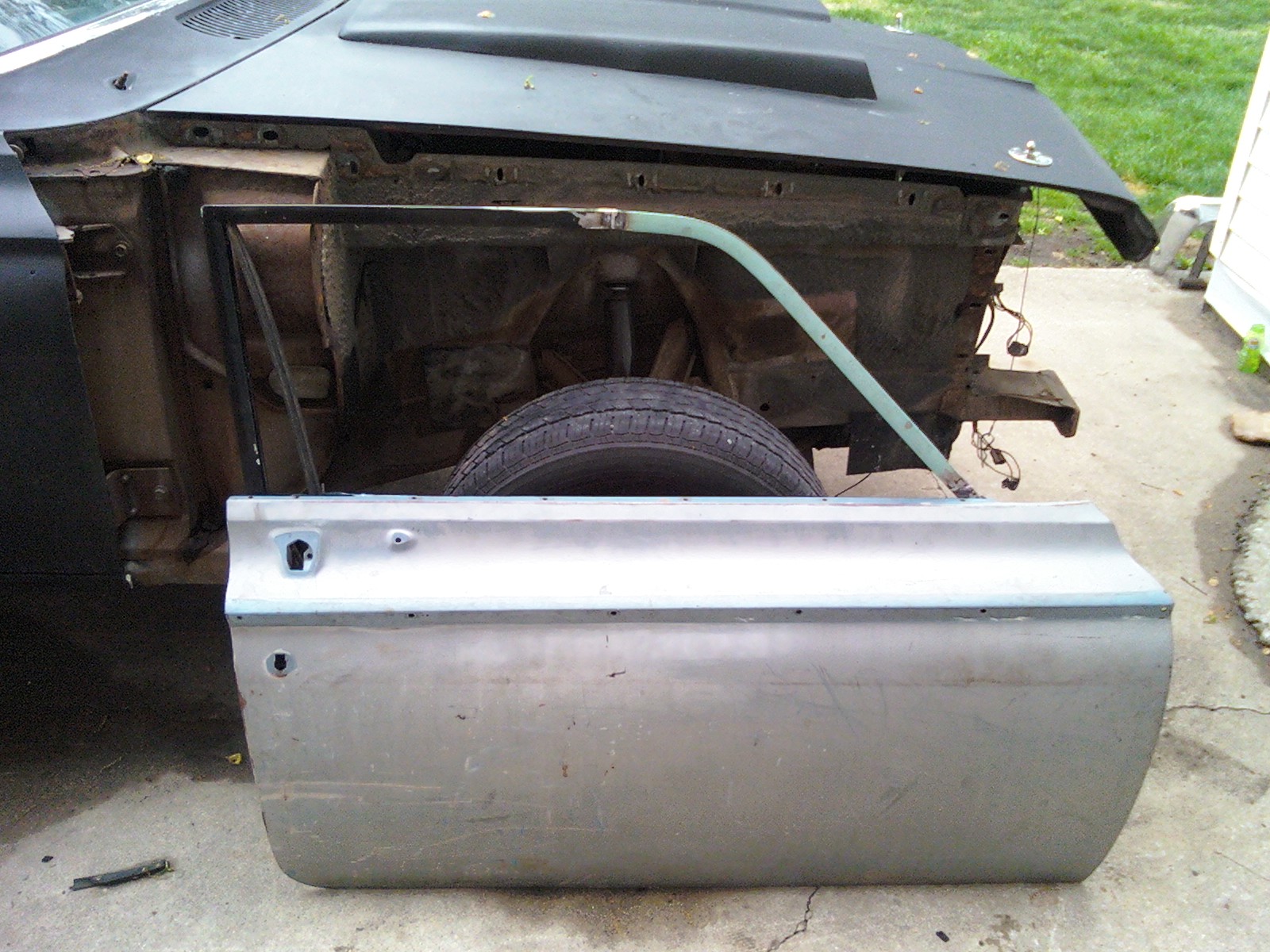 Grafting in sedan window frame into ht door that is rust free. Other door was shot